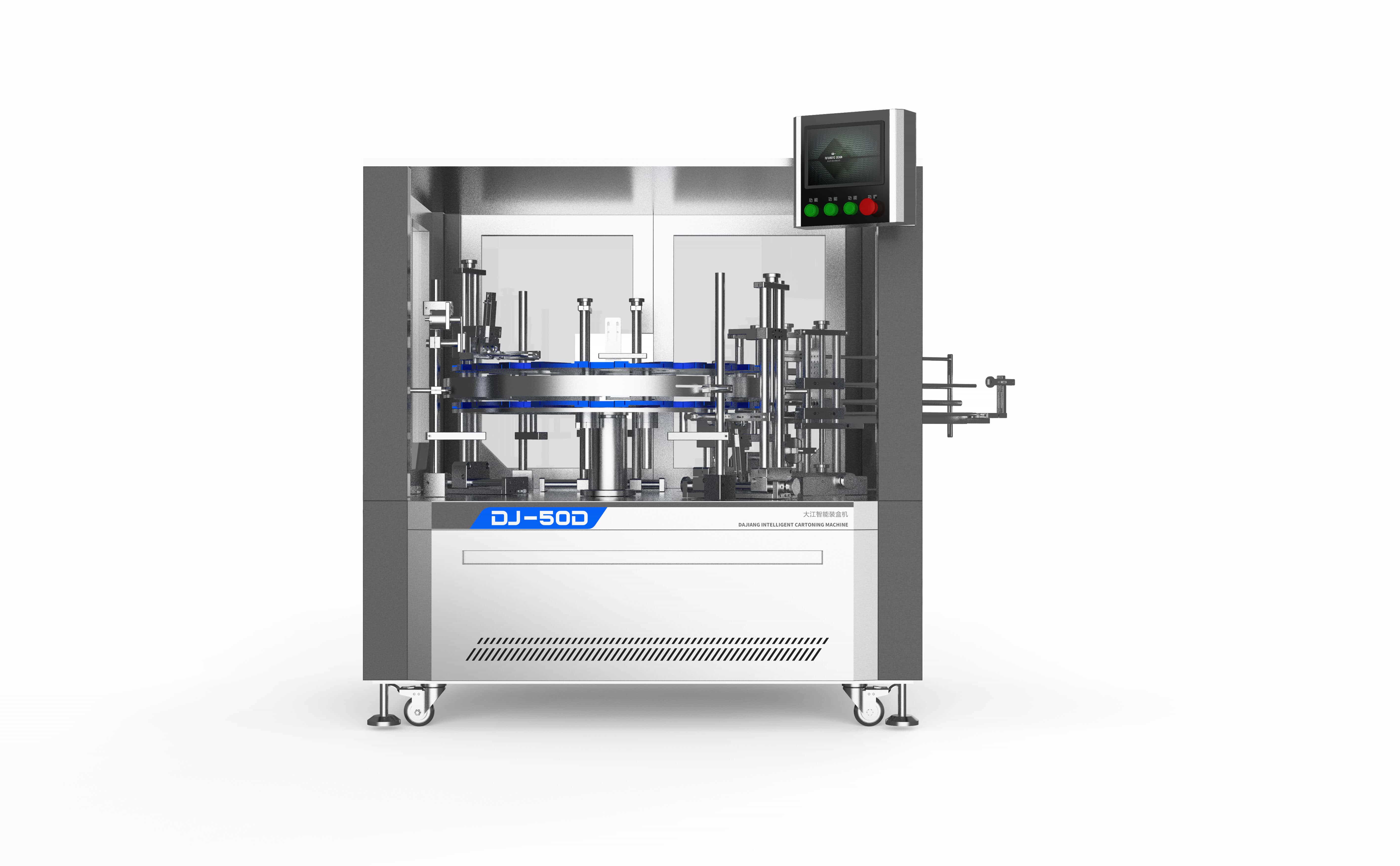 DJ-50多功能立式裝盒機適應(yīng):制藥行業(yè),食品行業(yè),化妝品行業(yè),電子行業(yè)紙盒立式自動成型包裝。